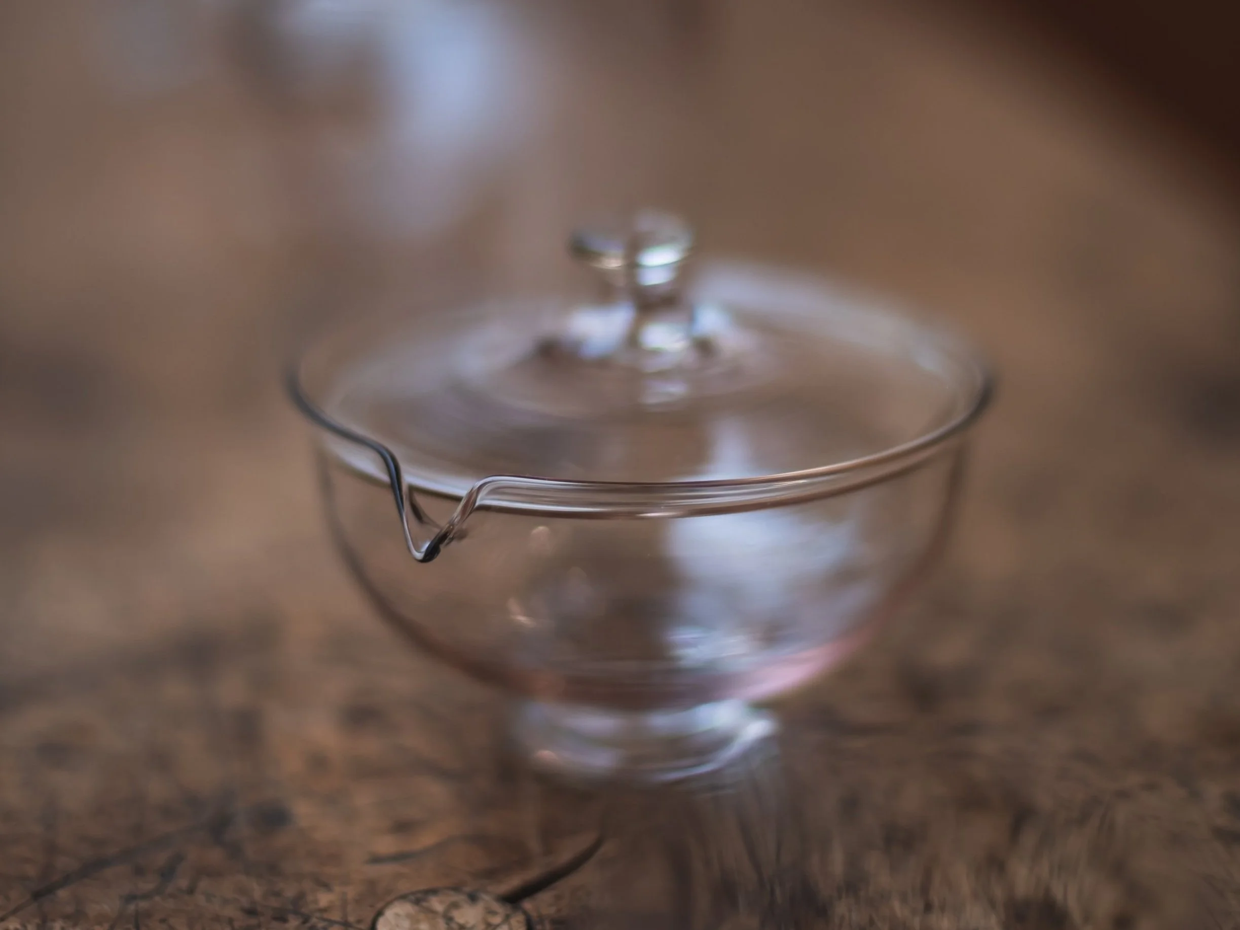 Completely heat resistant - suitable for pouring boiling water inside - the robust glass ware by Torimoto feels much more grounded. Inspired by the life in the mountains of Kyoto, the elongated glass pieces are functional and ideal for daily use. Yuya Torimoto collects many herbs and also fresh tea leaves from the surrounding area and brews them in her glass Gaiwan. Check out their instagram for more impressions.